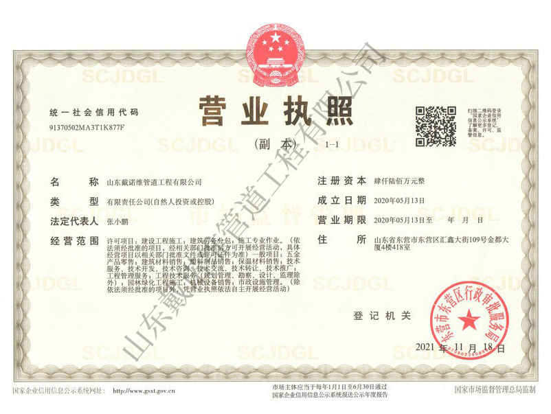 管道非開挖修復工程服務企業(yè)資質(zhì)證書