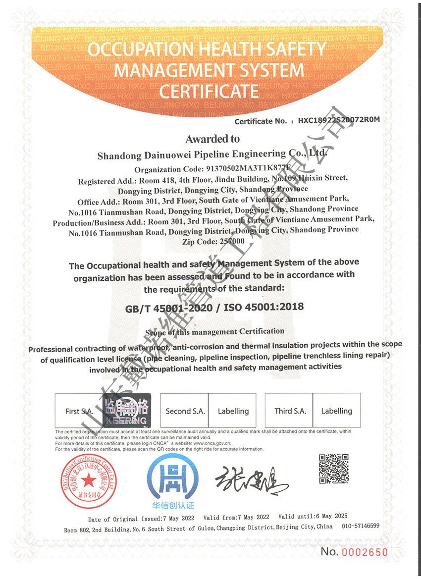 管道非開(kāi)挖修復(fù)工程服務(wù)企業(yè)資質(zhì)證書(shū)