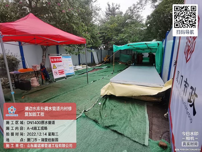4.項(xiàng)目概況:湖邊水庫(kù)DN1400補(bǔ)調(diào)水管道全長(zhǎng)8709.5m,起點(diǎn)為高殿水廠。湖邊水庫(kù)補(bǔ)調(diào)水管道設(shè)計(jì)輸水能力20萬(wàn)m3/d,是保障廈門市島內(nèi)原水應(yīng)急供應(yīng)的重要管道。湖邊水庫(kù)補(bǔ)調(diào)水管道補(bǔ)調(diào)水管道自2010年1月投入運(yùn)行,部分路段管道多次發(fā)生漏水或破管事件,因此本次對(duì)爆管頻繁發(fā)生段管道予以修復(fù)。該現(xiàn)狀管管徑為DN1400,采用預(yù)應(yīng)力II 級(jí)鋼筋混凝土管(以下簡(jiǎn)稱混凝土管)、鋼管和球墨鑄鐵管埋地鋪設(shè),其中原管材為鋼管或球墨鑄鐵的管段本次不予以修復(fù)。由于混凝土管段多次發(fā)生管道破裂、脫節(jié)及沉降事件,因此本次對(duì)混凝土管段予以修復(fù),全長(zhǎng)3568.55m。采用非開挖方式內(nèi)襯不銹鋼更新修復(fù)。
