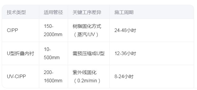 管道非開(kāi)挖內(nèi)襯修復(fù)技術(shù)因其高效、環(huán)保等特點(diǎn),已成為現(xiàn)代城市管網(wǎng)維護(hù)的主流方式。結(jié)合不同修復(fù)方法的特點(diǎn)整理而成: